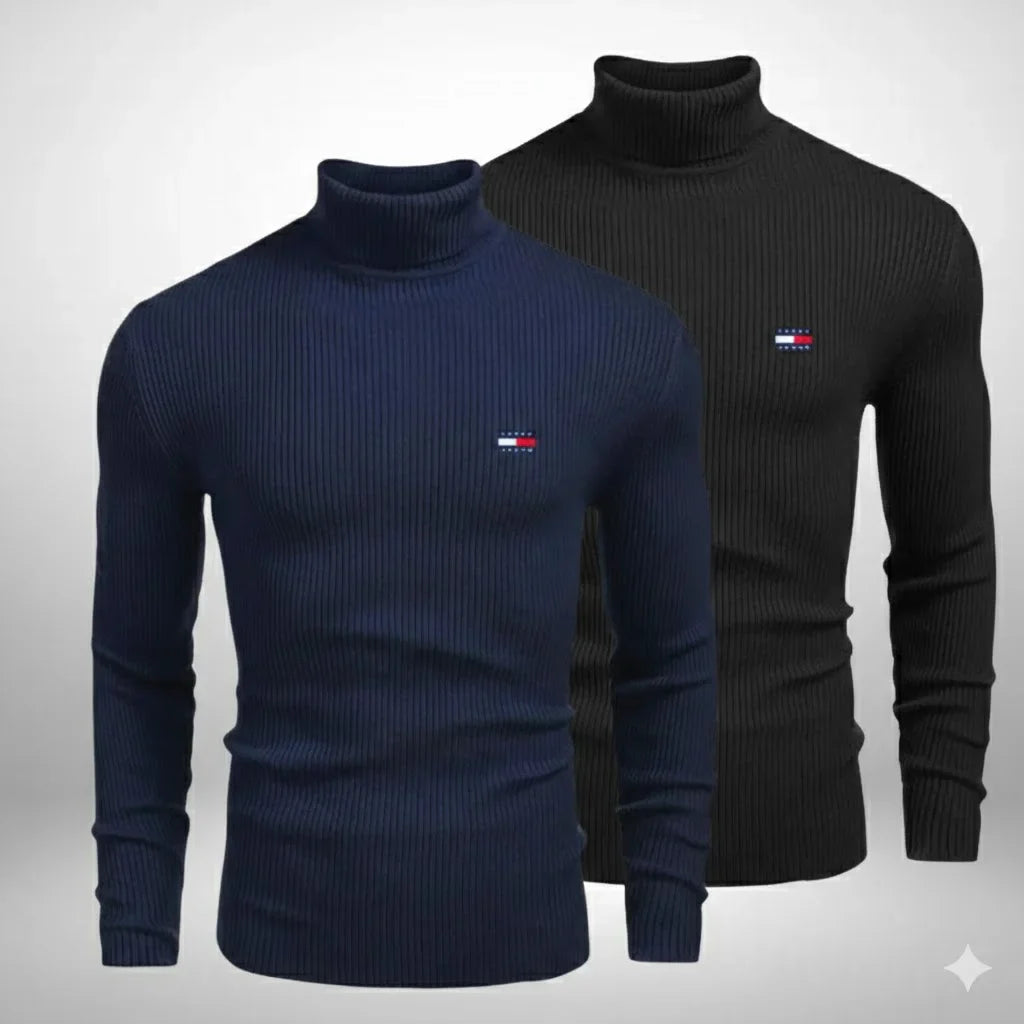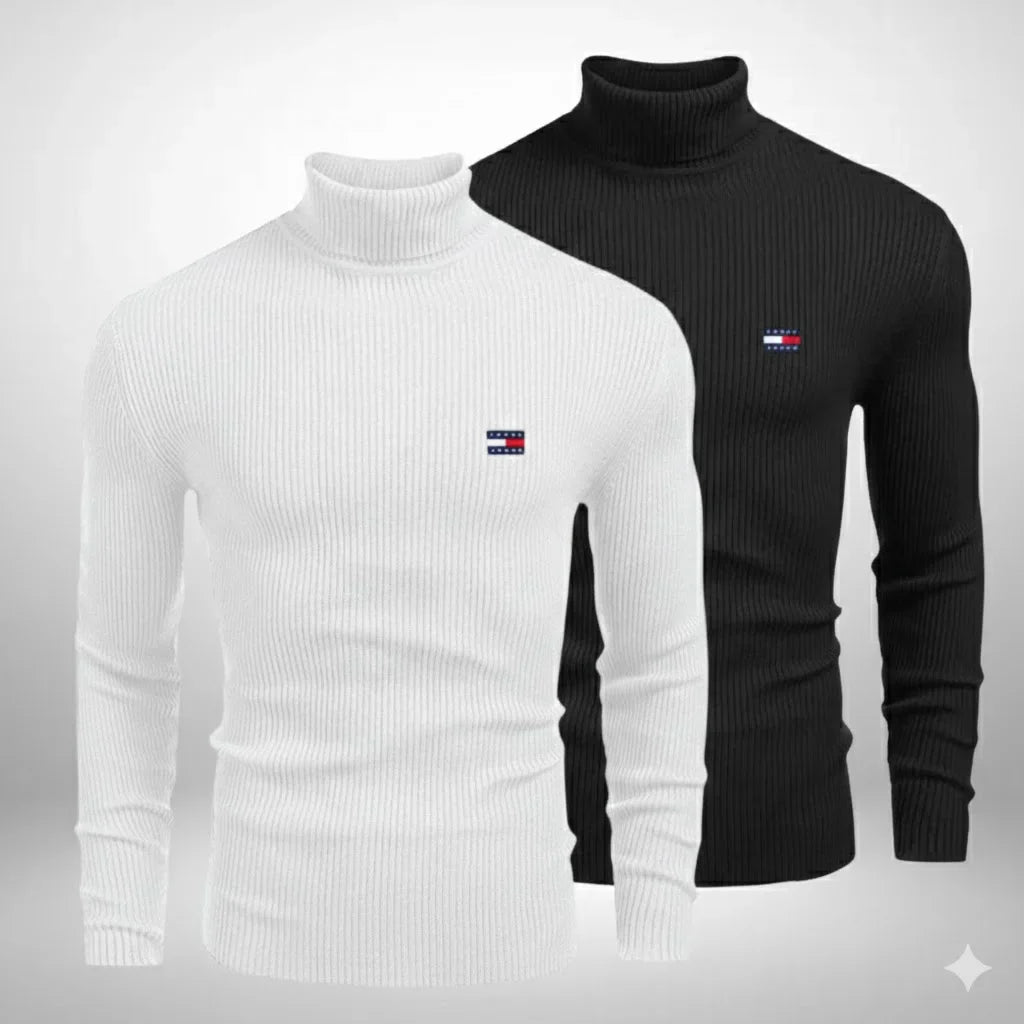 Entdecken Sie das hochwertige TH 2er-Set Rollkragenpullover, gefertigt aus weichem, hochwertigem Merino-Tricot. Die Pullover bieten außergewöhnliche Wärme, Komfort und ein angenehmes Tragegefühl, ideal für kühle Tage. Die feine Textur des Tricot-Materials verleiht jedem Pullover ein elegantes und maskulines Erscheinungsbild.
